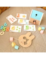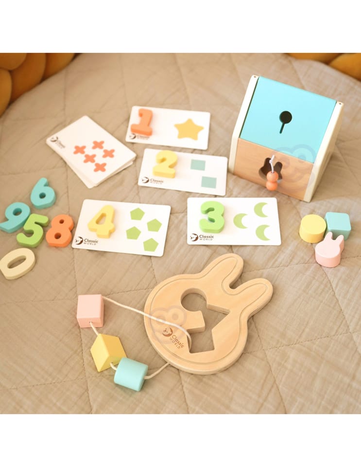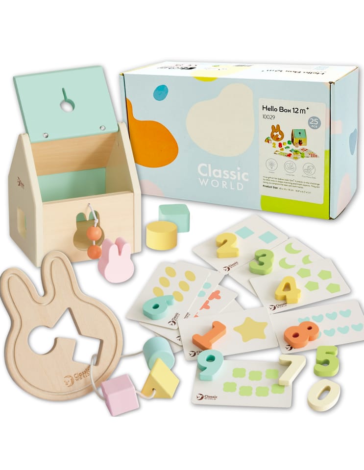 Ten wyjątkowy Powitalny BOX do nauki od renomowanej marki CLASSIC WORLD to idealny zestaw upominkowy dla każdego malucha! Wykorzystuje naturalną ciekawość świata dziecka, oferując zróżnicowane i angażujące zabawki. W zestawie znajdziesz sorter, układanki do nauki liczenia, klocki oraz uroczą zabawkę do przewlekania w kształcie królika. To kompletny pakiet, który w jednym pudełku wspiera wszechstronny rozwój dziecka, doskonaląc umiejętności motoryczne i eksplorację wizualną.