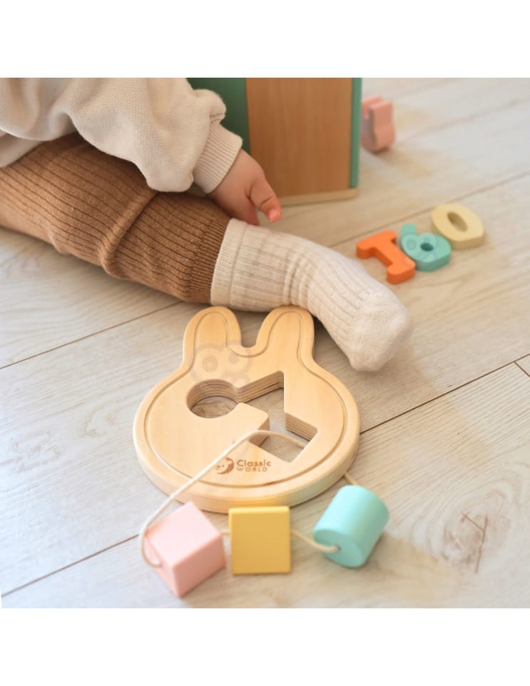 - - Zabawkę do przewlekania w kształcie królika