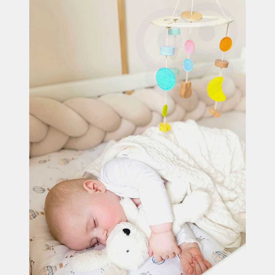 - Karuzelka zapewnia dziecku zajęcie - co może być szczególnie przydatne, gdy rodzice potrzebują chwilę odpoczynku lub chcą zająć dziecko podczas zmiany pieluszki czy ubierania.