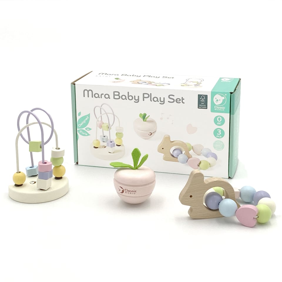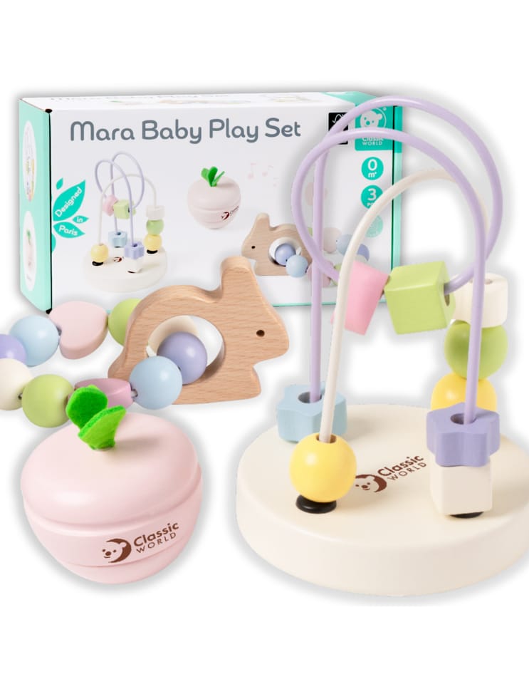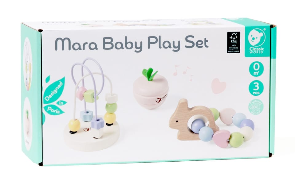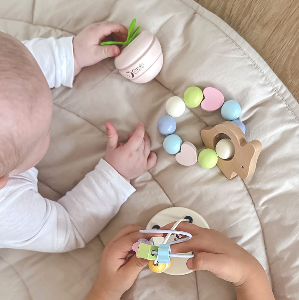Pastelowy Zestaw Motoryczny od marki CLASSIC WORLD to idealne wprowadzenie w świat manipulacji i odkrywania, dostosowane do najmniejszych rączek. W jednym opakowaniu znajdziesz trzy drewniane zabawki: klasyczną pętlę motoryczną, uroczą grzechotkę w kształcie króliczka oraz różową rzodkiewkę. Pastelowe kolory i gładkie, bezpieczne drewno stymulują zmysły wzroku i dotyku, a różnorodne funkcje angażują dziecko w ćwiczenie precyzji i koordynacji ręka-oko. To idealny prezent, który wspiera rozwój motoryczny i ciekawość maluszka już od najwcześniejszych miesięcy.