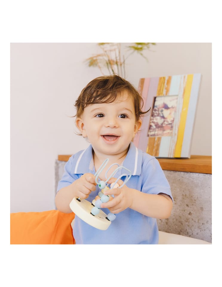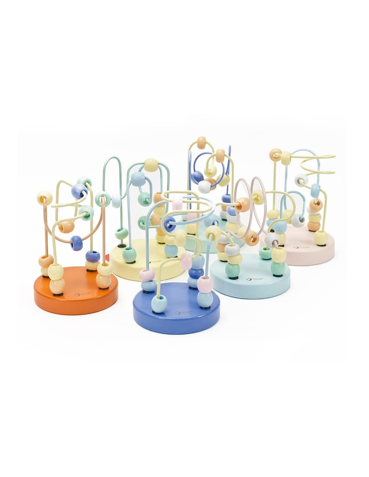 - - Na metalowych kolorowych prętach znajdują się piękne drewniane koraliki, którymi dziecko może przesuwać w dowolny sposób, ćwicząc przy tym precyzję ruchów palców i dłoni.