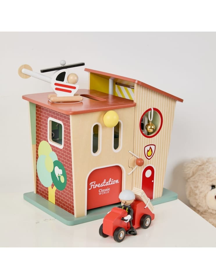 Zestaw Classic World Remiza Strażacka 13el. to wspaniała zabawka, która przeniesie Twoje dziecko w świat bohaterskich strażaków i emocjonujących akcji ratunkowych! Wykonany z naturalnego drewna, ten zestaw zachwyca swoją jakością i dbałością o detale. Remiza strażacka została zaprojektowana w Paryżu, co gwarantuje jej unikalny styl i funkcjonalność. Dzięki różnym konfiguracjom i otwartym drzwiom, dziecko może swobodnie manipulować elementami, tworząc własne scenariusze. Zabawka jest idealna do rozwijania wyobraźni, zdolności językowych oraz małej motoryki, zapewniając godziny kreatywnej zabawy.