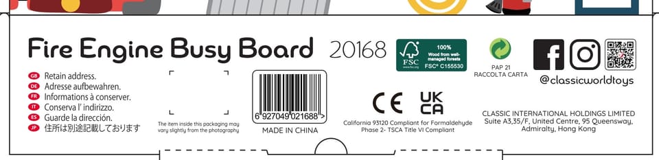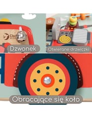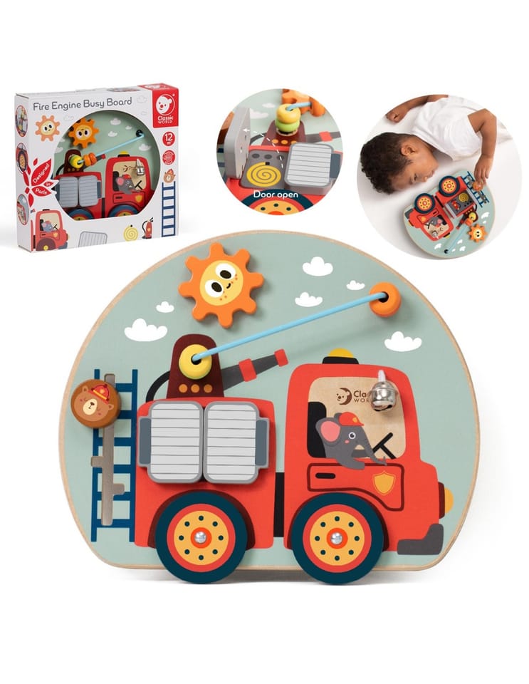 Tablica manipulacyjna 6w1 od marki CLASSIC WORLD jest idealną zabawką dla dzieci. Tablica zawiera w sobie otwierające drzwiczki, koraliki/pętle, obracające się koło, drabinkę, dzwonek oraz pokrętło które zwrócą uwagę malucha na długie godziny. Dzieci uwielbiają strażaków, więc zabawka szczególnie przypadnie do gustu. Ciekawy wygląd i dużo elementów pobudzi wyobraźnię i kreatywność dziecka, rozwinie również zdolności manualne oraz koordynację malucha.