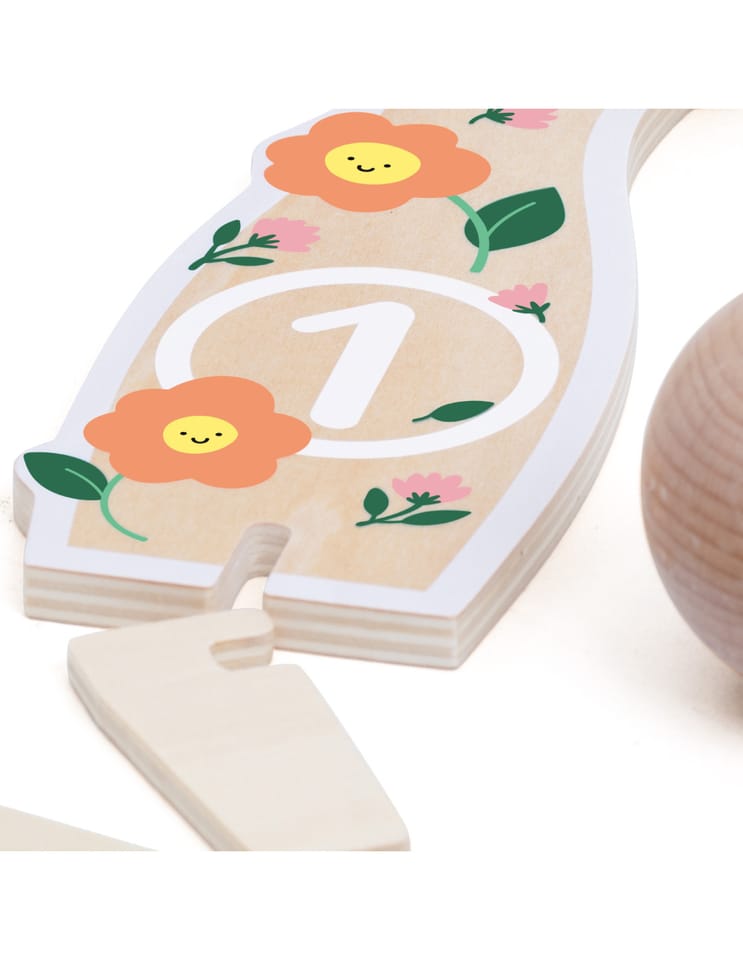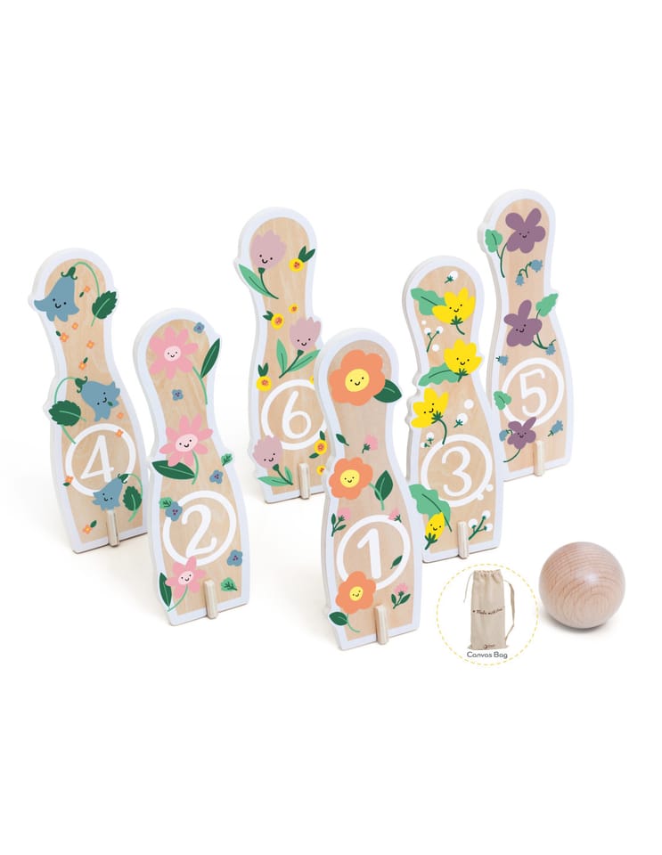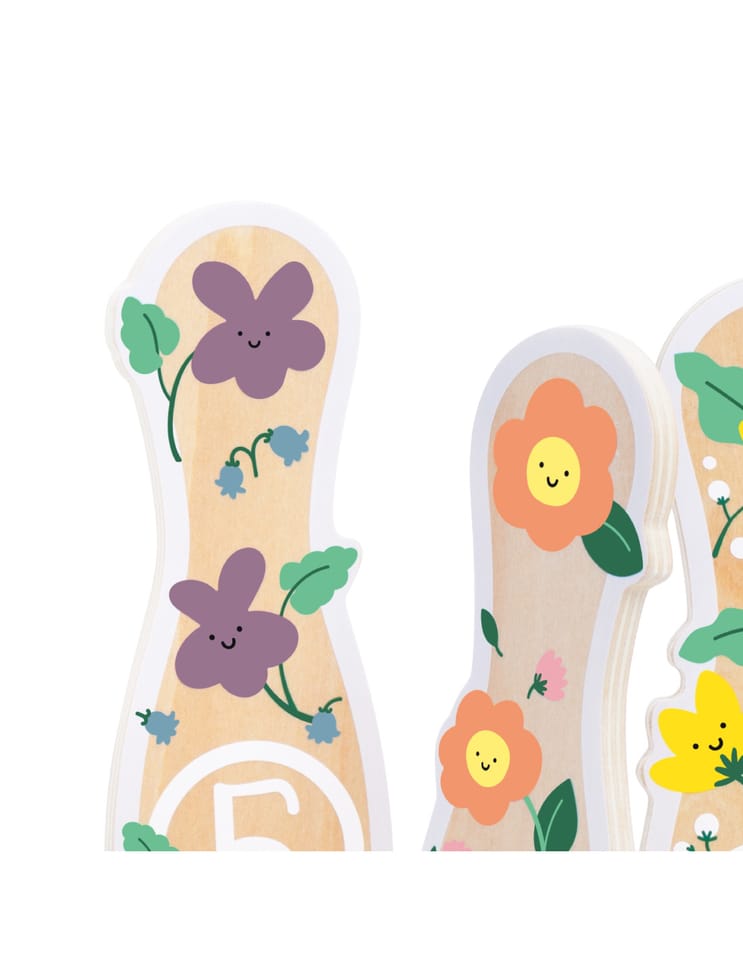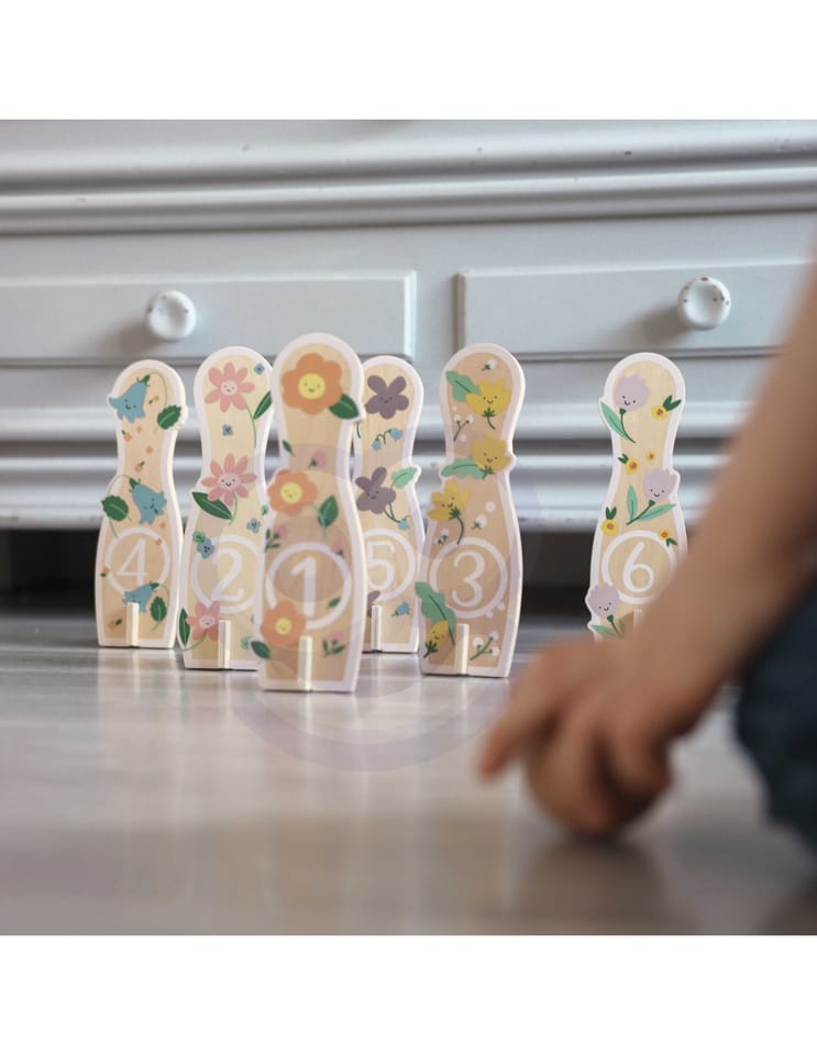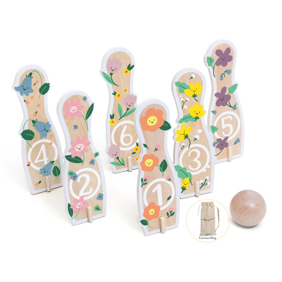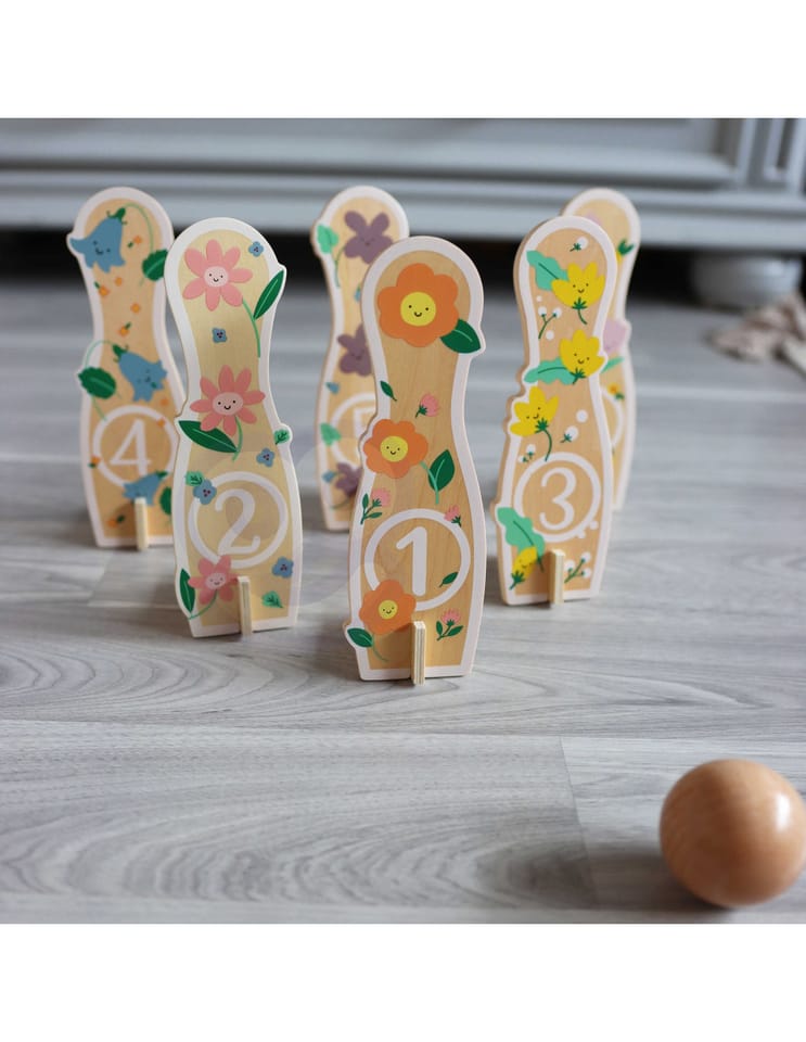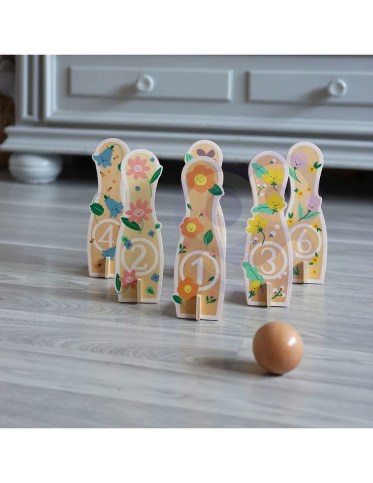 - - kręgle przedstawiają rysunki kwiatków,