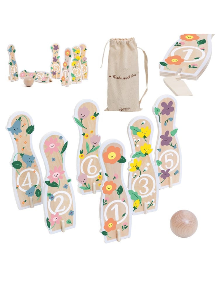 Drewniane Kręgle od marki CLASSIC WORLD to wszystko czego dzieci potrzebują, aby rozwijać zdolności ruchowe i jednocześnie świetnie się, przy tym bawić. Zestaw zawiera 6 kręgli, 1 piłkę oraz worek do przechowywania. Nie musimy przekonywać, że gra w kręgle będzie wspaniałą zabawą dla Twojego maluszka, ale również dostarczy wiele korzyści edukacyjnych. Zabawka rozwija zdolności motoryczne Twojego dziecka poprzez m.in.: bieganie i rzucanie.