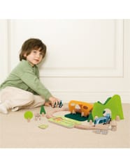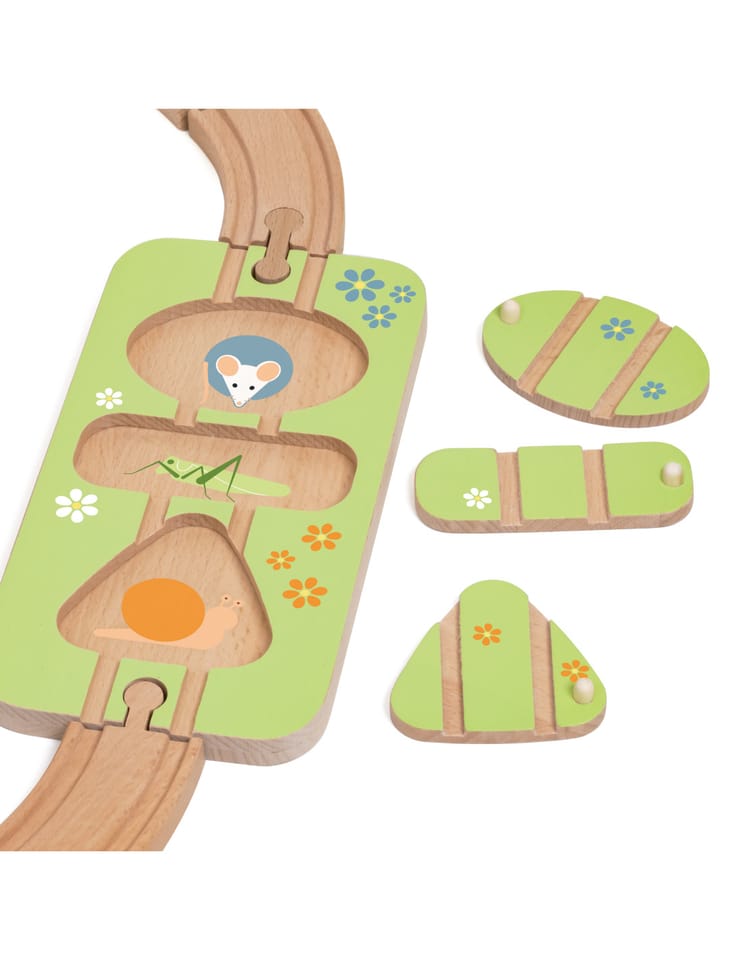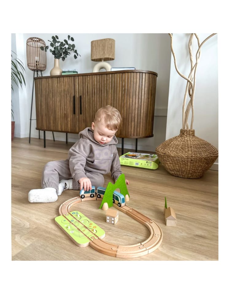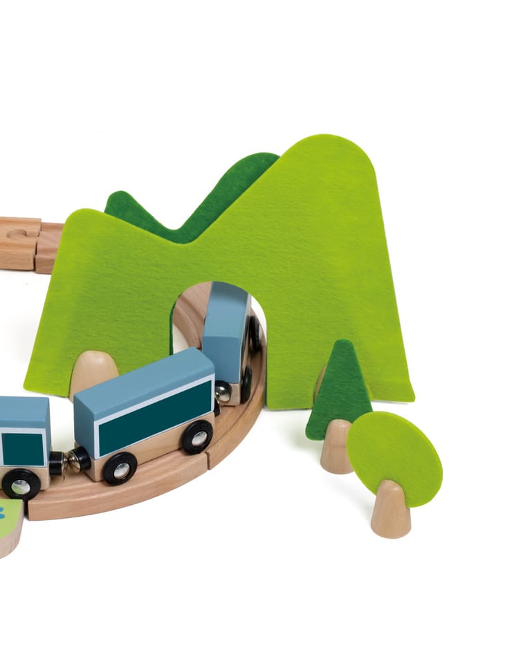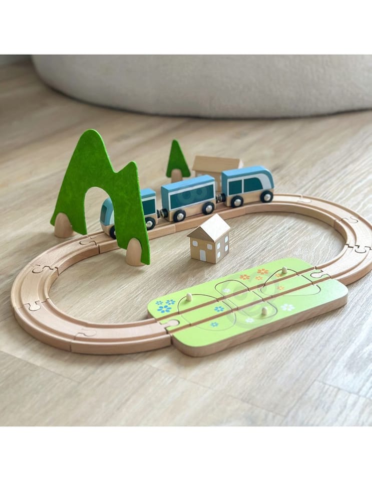 Zestaw kolejka drewniana pociąg od marki CLASSIC WORLD to prawdziwa piękność, a jego atrakcje i filcowe dekoracje pełne są niespodzianek! W zestawie znajdują się tunel, stacja i puzzle z kształtami, które można połączyć, aby odbudować trasę. Kolorowe kwiaty i ukryte zwierzęta pomagają w znalezieniu odpowiednich kształtów. Bloki można układać w stosy, tworząc domy, które można ustawić wokół toru. Pociąg ten stymuluje kreatywność, rozwój języka, małą motorykę i koordynację. Drewno posiada certyfikat FSC, a filc wykonany jest z materiału P.E.T. pochodzącego z recyklingu.