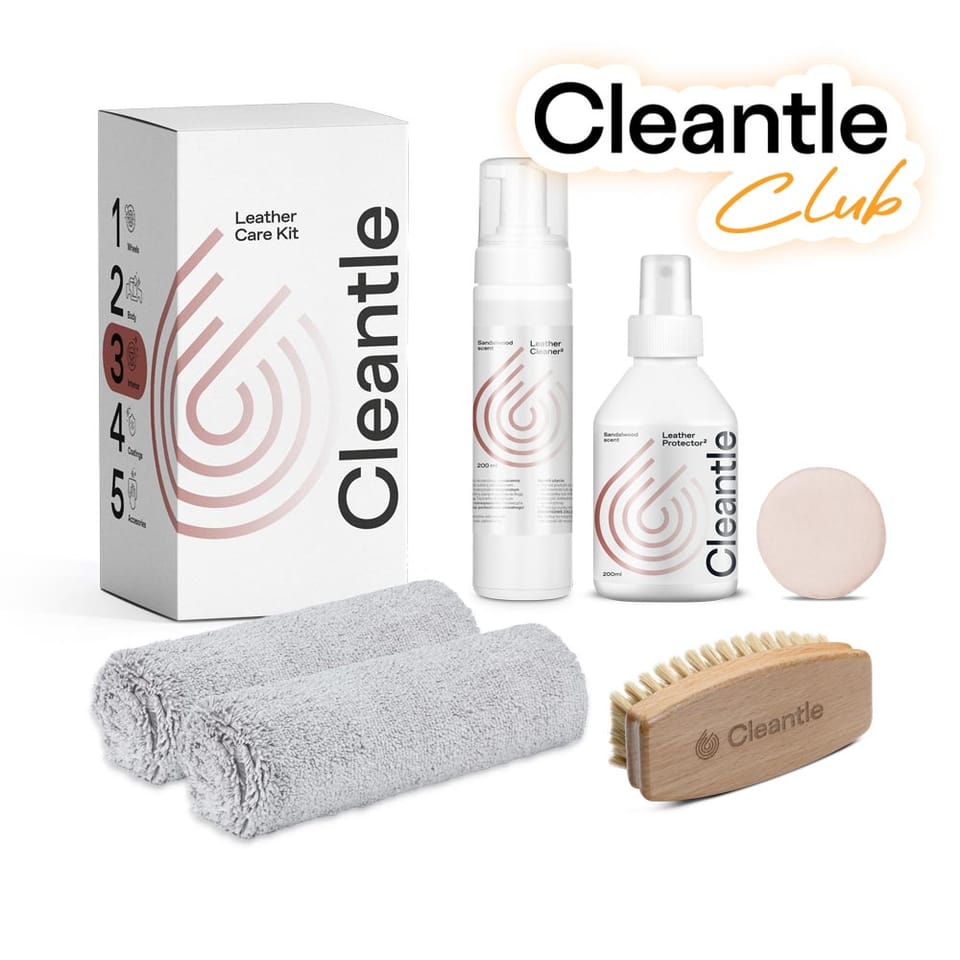 Leather Care Kit to kompletny zestaw do czyszczenia, pielęgnacji i zabezpieczania tapicerki skórzanej.Ten zestaw pozwoli dokładnie wyczyścić tapicerkę skórzaną za pomocą Leather Cleaner2 i szczotki do skóry, by następnie nawilżyć ją i zabezpieczyć za pomocą Leather Protector2 i aplikatora Pinky Pad lub delikatnej mikrofibry Daily Cloth.