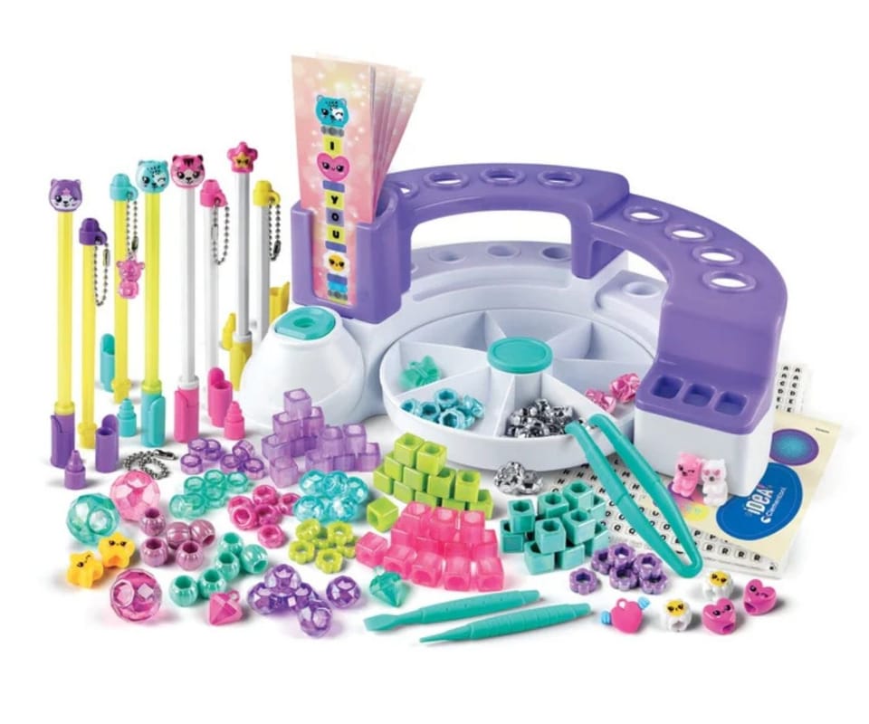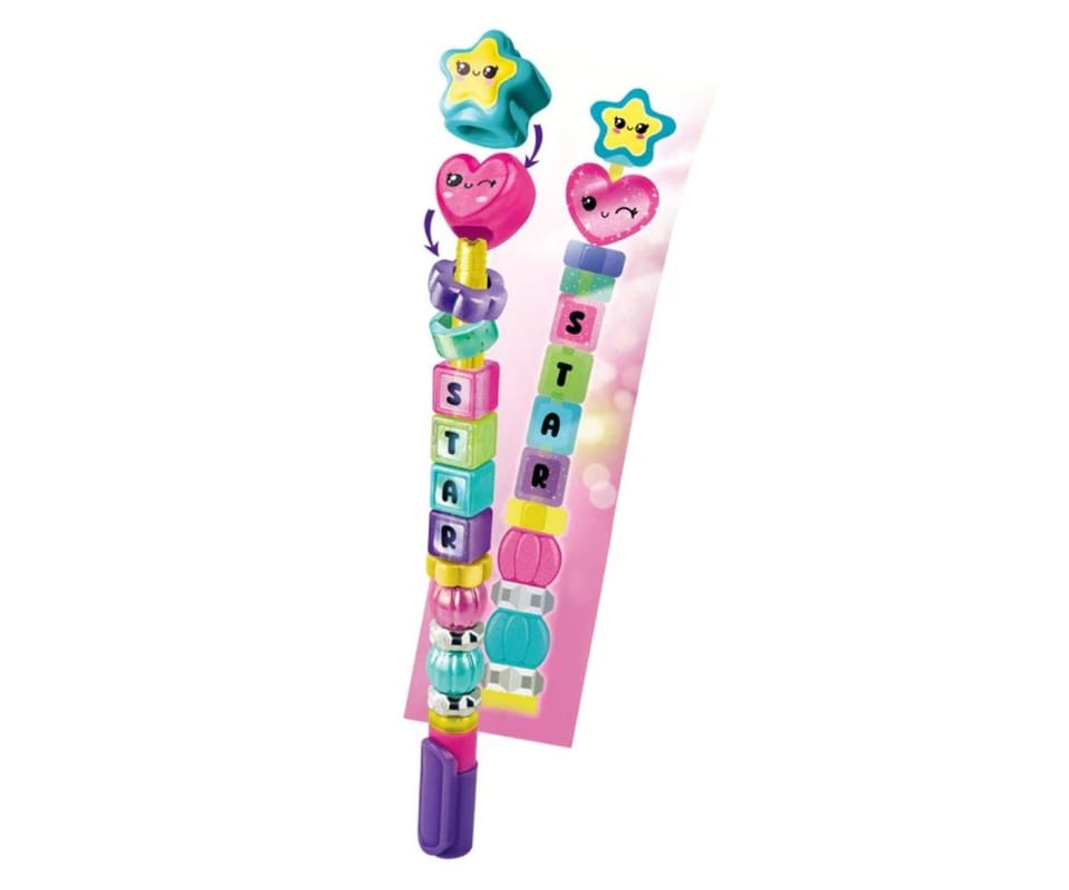 Całkiem nowa zabawka kreatywna zachęcająca do personalizowania wieluko lorowych długopisów Nowa zabawka z linii Idea służy do personalizowania wielu długopisów przy użyciu liter, koralików, naklejek i sympatycznych postaci. Do zabawki jest dołączony praktyczny pulpit, bogaty zestaw narzędzi i stanowisko do tworzenia kolorowych długopisów.Wiek dziecka: +6 latWymiary kartonu: 41,8x29x7,7