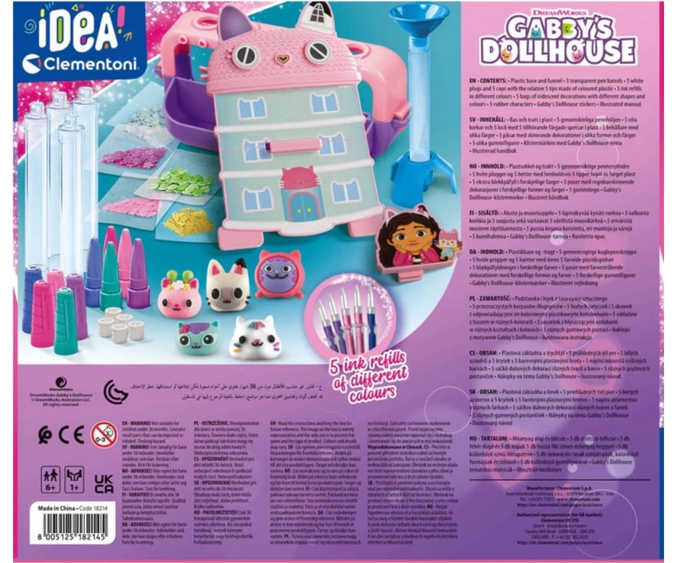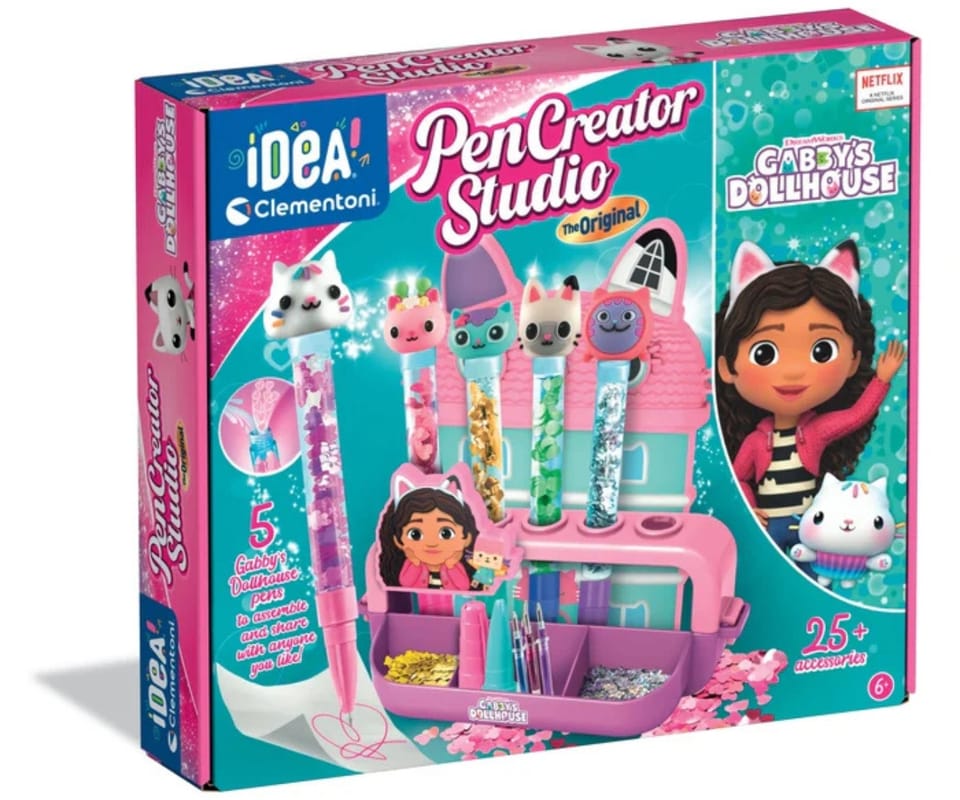 Nowa fabryka długopisów Gabi! Zabawka przeznaczona do tworzenia przepięknych długopisów w doskonałym stylu Kociego Domku Gabi. Praktyczny pulpit i bogaty zestaw narzędzi do personalizowania swoich długopisów wieloma dodatkami i milutkimi kotkami Gabi. Zestaw zawiera 5 długopisów z odpowiednimi postaciami, kolorowe tusze, połyskujące ozdoby, naklejki do personalizowania pulpitu oraz wszystko, co jest potrzebne, aby puścić wodze własnej wyobraźni.Wiek dziecka: +6 latWymiary kartonu: 29x25x5,5