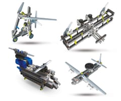 Odkryj tajniki aerodynamiki z Laboratorium Mechaniki!Zestaw naukowy do odkrywania i eksperymentowania z mechaniką lotu.Ponad 10 modeli i 200 elementów do montażu, a w tym: pręty do montażu gondoli, panele, śmigła, koła zębate, koła pasowe i przeguby.Pakiet szczegółowych informacji na temat historii lotnictwa. Ilustrowana instrukcja pokaże dziecku, jak zbudować modele.Na długie godziny zabawy!Wiek dziecka 8+ lat