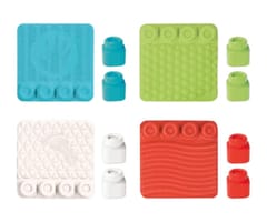 Na elementach znajdują się kształty klocków Clemmy, dzięki czemu dziecko może oddać się radosnemu dopasowywaniu klocków, aby stworzyć mnóstwo wież.
