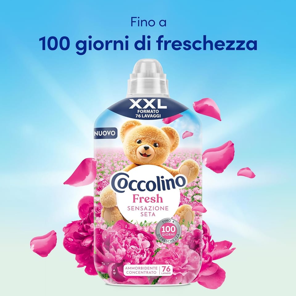 Kompozycja zapachowa łączy nuty różowe w górze, kwiat bzu w sercu i brzoskwinię w bazie, tworząc elegancką, delikatną wonność, która utrzymuje się przez długi czas. Coccolino Sensazione Seta to gwarancja komfortu, świeżości i pielęgnacji włókien tkanin w jednym produkcie.