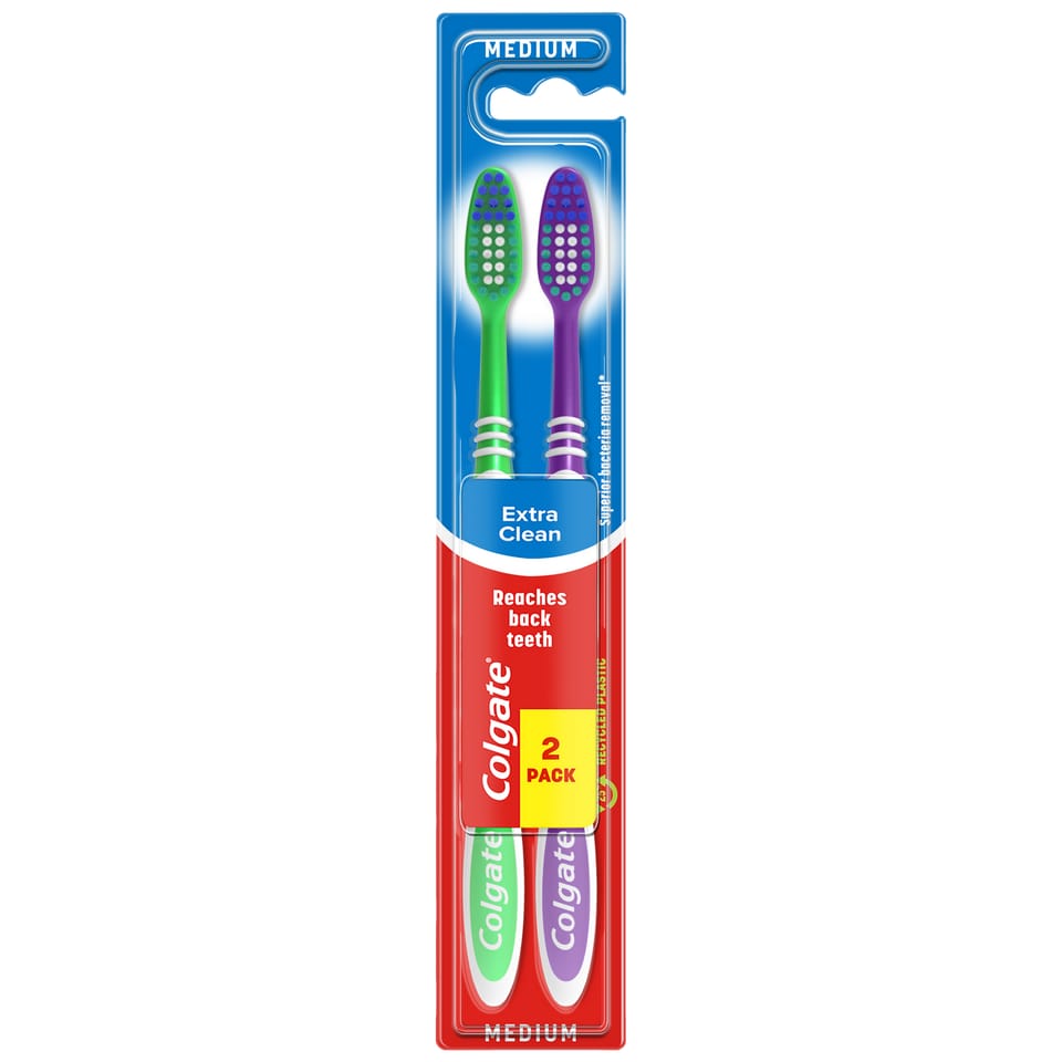 Colgate Extra Clean to szczoteczka do zębów zaprojektowana z myślą o dokładnym czyszczeniu całej jamy ustnej, także trudno dostępnych tylnych zębów. Dzięki specjalnie ukształtowanej główce i skutecznym włóknom usuwa płytkę nazębną oraz pomaga zapobiegać próchnicy. To idealny wybór dla osób, które stawiają na kompleksową higienę jamy ustnej.