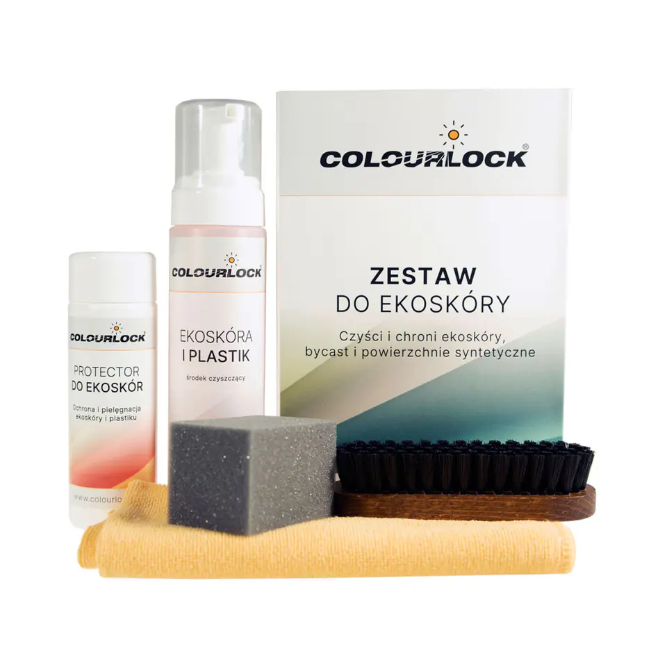 Zestaw COLOURLOCK zawiera wszystko, czego potrzebujesz do czyszczenia i pielęgnacji ekoskór i plastikowych powierzchni. Silnie zabrudzone powierzchnie ponownie stają się czyste. Użyj miękkiej szczotki zawartej w zestawie do czyszczenia powierzchni.