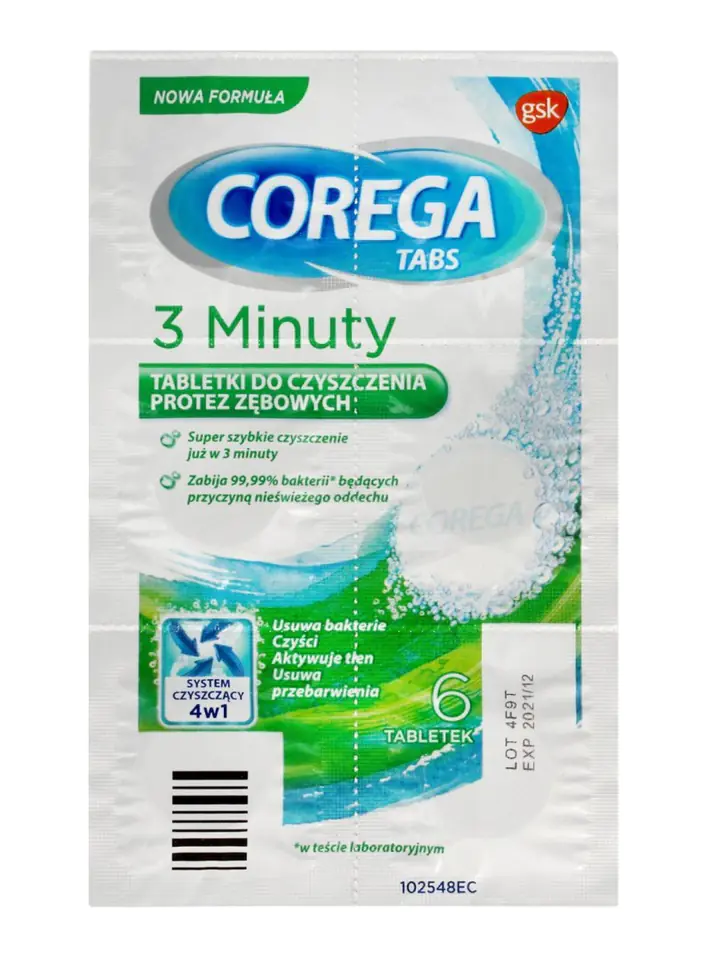 Corega Tabs Tabletki do czyszczenia protez 3 minuty
