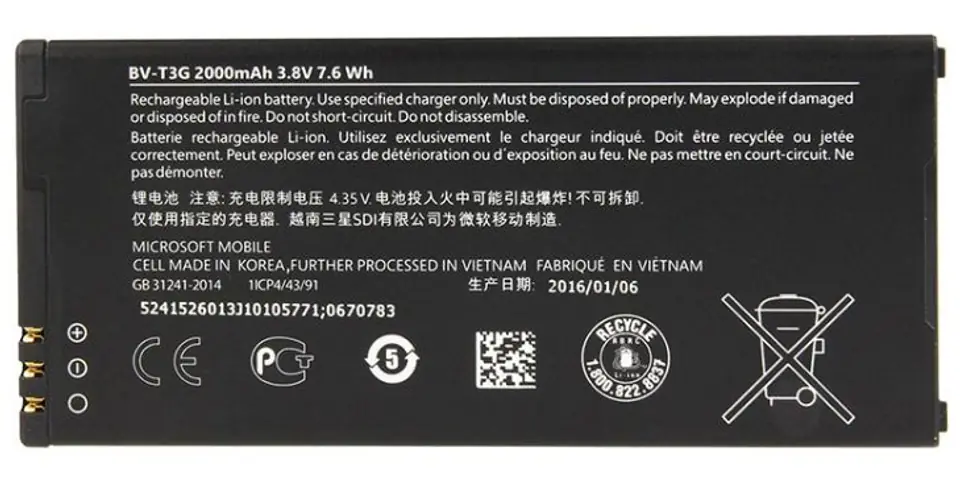 CoreParts Battery for Mobile 7.60Wh Li-ion 3.8V 2000mAh Microsoft Lumia 650 7.6Wh Li-ion 3.8V 2.0Ah Microsoft Lumia 650