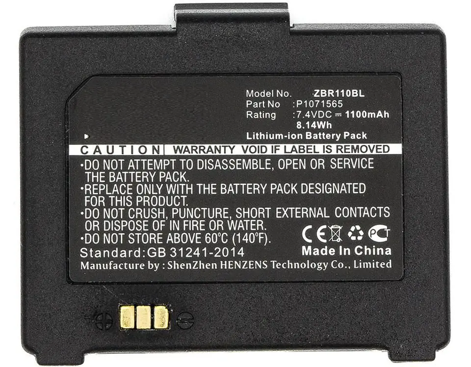 CoreParts Battery for Zebra Printer 8.14Wh Li-ion 7.4V 1100mAh Black, P1070125-008, P1071565