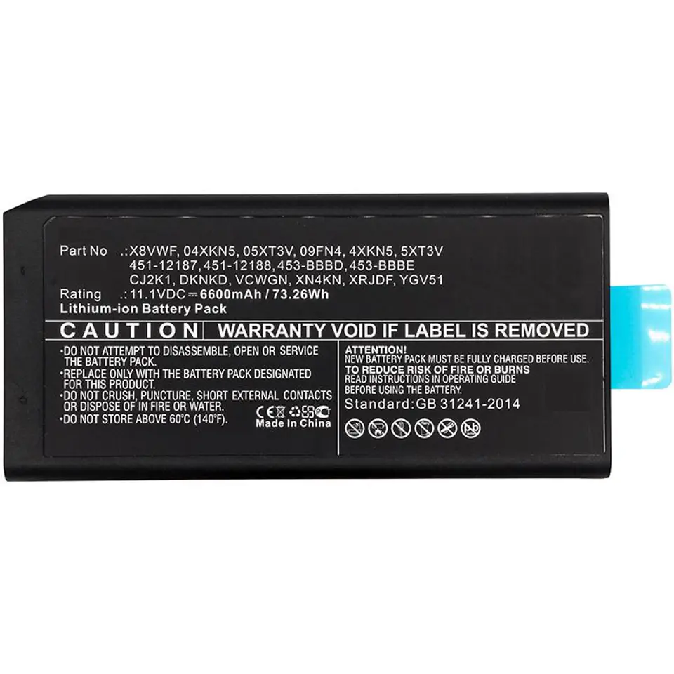 CoreParts Laptop Battery for Dell 73.26Wh 11.1V 6600mAh 73WH Li-ion 11.1V 6.6Ah Latitude 12 7204, Latitude 14 7404, Latitude 14 Rugged 5404