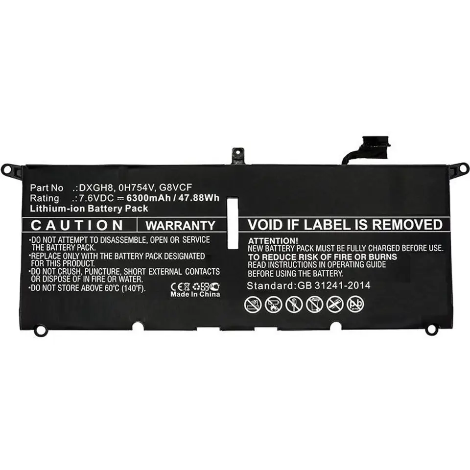 CoreParts Laptop Battery for Dell 47.88Wh 7.6V 6300mAh 48Wh Li-Pol 7.6V 6300mAh Black, XPS 13 2018, XPS 13 9370, XPS 13 9370 FHD i5, XPS