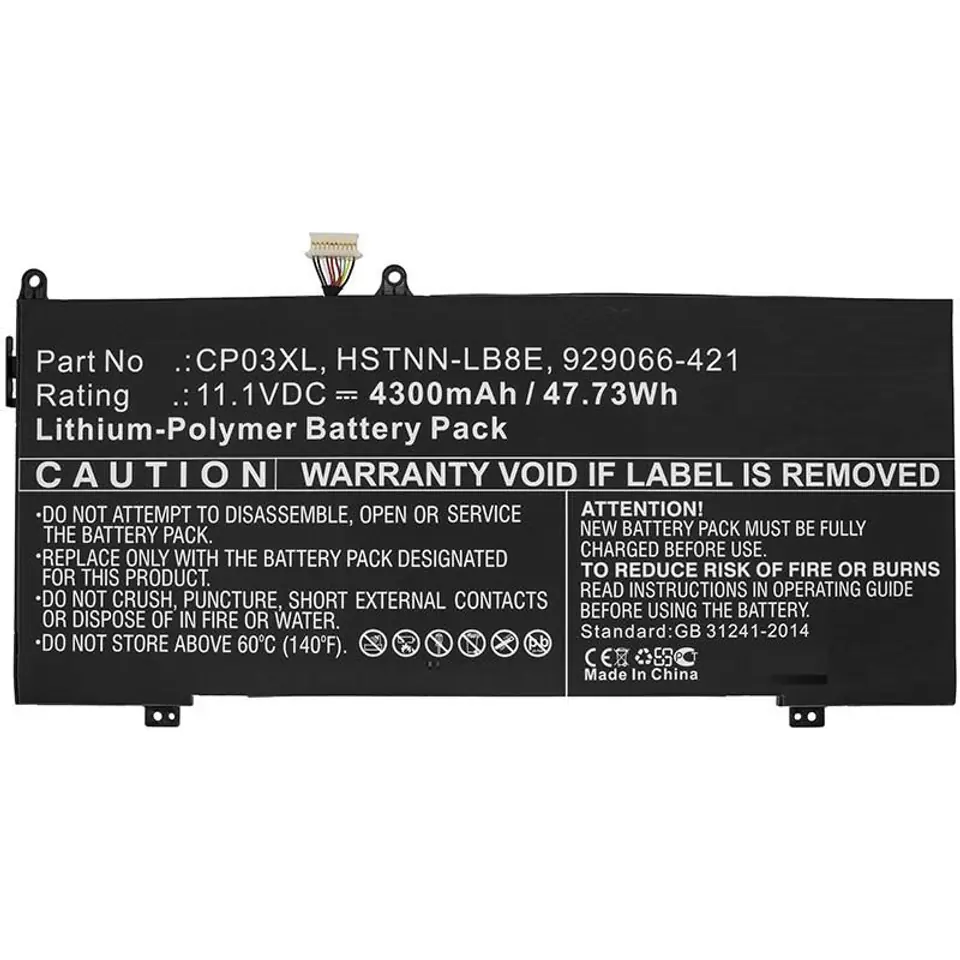 CoreParts Laptop Battery for HP 55.86Wh 11.4V 4900mAh 48Wh Li-Pol 11.1V 4300mAh Black - Spectre X360 13, Spectre 13