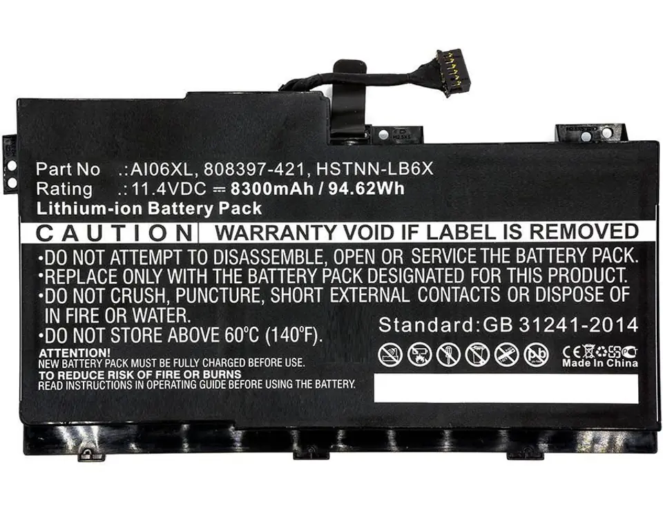 CoreParts Laptop Battery for HP 95.76Wh 11.4V 8400mAh 95Wh Li-ion 11.4V 8300mAh Black, ZBook 17 G3, ZBook 17 G3 M9L94AV, ZBook 17 G3 T7V61ET,