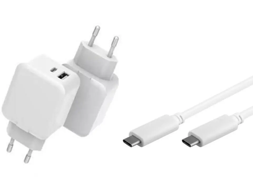 CoreParts USB-C Charger with 1meter USB-C Cable 30W 5V-12V/2A-3A Output: USB-C + USB-A PD QC3.0 Input: 110-230V EU Wall, for mobile phones,