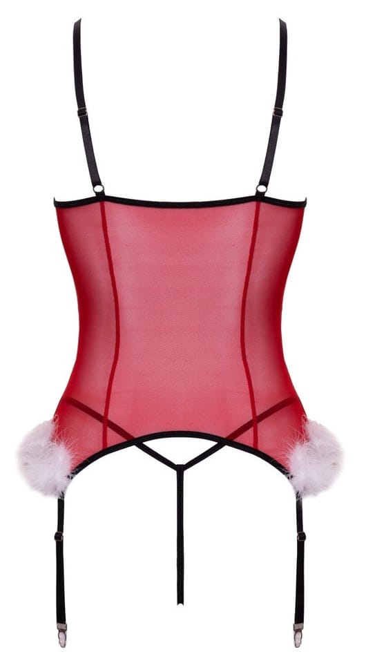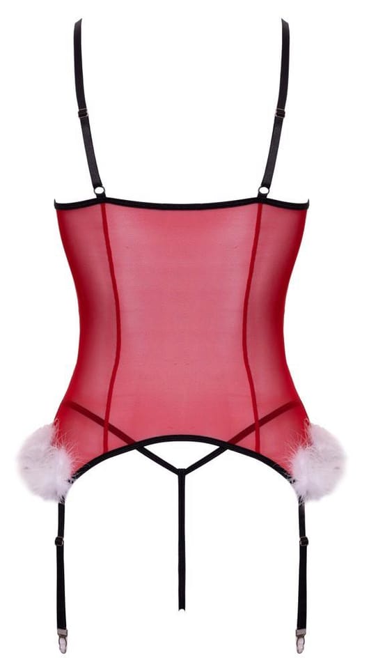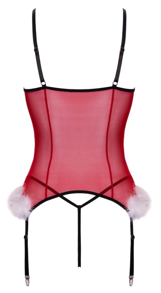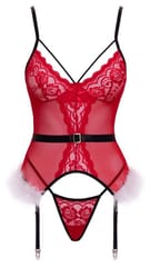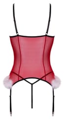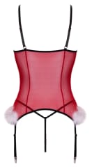 Cottelli Lingerie X-Mas Basque L/XL z koronką i piorkami, czerwony
