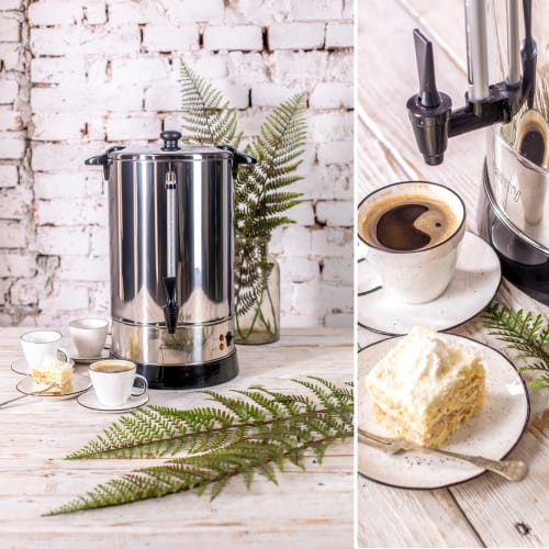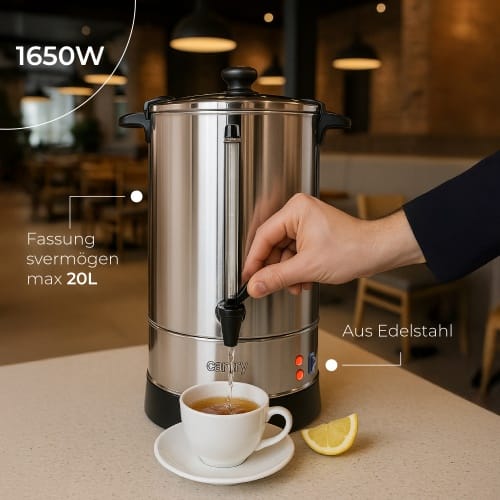 Wykonany ze stali nierdzewnej warnik CR 1259 pozwala zarówno na podgrzewanie wody, jak i utrzymywanie jej temperatury. Niezastąpiony w czasie konferencji do organizacji przerw kawowych, a także przy różnego rodzaju spotkaniach biznesowych, naukowych i towarzyskich. Dzięki swojej mobilności doskonale sprawdza się jako wyposażenie firm przygotowujących eventy. Warnik Camry jest prosty i wygodny w obsłudze, a dodatkowo zapewnia bezpieczeństwo użytkowania (nienagrzewające się uchwyty i kranik).