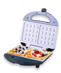 Gofrownica o mocy 1000 W z termostatem. Doskonała do przygotowywania chrupiących gofrów. Jednocześnie opieka 2 gofry. Zaopatrzona w płyty grzewcze pokryte biała ceramiczną powłoką zabezpieczającą przed przywieraniem, co ułatwia czyszczenie. Wygodna także w transporcie, dzięki miejscu do nawinięcia sznura i gotowości do przechowywania w pozycji pionowej.