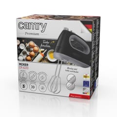 Poręczny mikser kuchenny o mocy 750 W. Niezbędny dla każdej osoby, która piecze ciasta i ciasteczka. Pozwala na wykorzystanie 5 różnych prędkości, w zależności od rodzaju przygotowywanej potrawy. Dzięki temu nadaje się zarówno do mieszania mąki z innymi składnikami, jak i do ubijania jajek. W razie potrzeby można też użyć funkcji Turbo. Robot jest praktyczny i wytrzymały, dzięki czemu można go używać przez długi okres czasu bez ryzyka awarii. Urządzenie jest wyposażone w długie 21 cm mieszadła i trzepaki ze stali nierdzewnej.