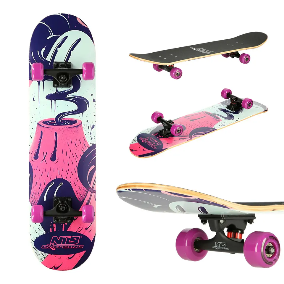 CR3108SA Volcano Nils Extreme, to deskorolka o nowoczesnym designie i solidnej konstrukcji, dzięki czemu świetnie sprawdzi się podczas miejskich przejazdów, jak i wymagających trików na rampie. Deskorolka CR3108SA jest przeznaczona zarówno dla początkujących użytkowników oraz dla tych bardziej doświadczonych. Solidna konstrukcja Deskorolka została wykonana z 9-warstwowej laminowanej sklejki. Deck jest specjalnie wzmocniony, profilowany oraz polerowany, co gwarantuje dużą wytrzymałość połączoną z elastycznością. Jej górną część pokryto papierem ściernym (tak zwany grip). Wykorzystanie tego materiału powoduje zwiększenie przyczepności nóg. Kółka i łożyska CR3108SA posiada kółka PU 54x36 mm, charakteryzujące się doskonałą szybkością. Podobnie łożyska klasy ABEC 7, które posiadają bardzo dobre właściwości jezdne. Specyfikacja: Wymiary: 78x20 cm Blat: 9-cio warstwowa sklejka laminowana profilowany obustronnie bardzo mocny polerowany Łożyska: ABEC 7 Truck: wzmocniony aluminiowy truck i baza Kółka: PU Blue 54x36 mm/ 85A Grip: czarny, antypoślizgowy Waga: 2,17 kg Waga użytkownika: max 100 kg Uwagi: Nie przeznaczona do użytku komercyjnego Gwarancja 24 miesiące Importer: Abisal Sp. z o.o.| Polska | 41-807 Zabrze | ul. Pyskowicka 17 | e-mail: abisal@abisal.plAbisal Sp. z o.o. deklaruje, iż produkty sprzedawane przez firmę są bezpieczne i spełniają wymagania zawarte w Ustawie o ogólnym bezpieczeństwie produktów z dnia 12 grudnia 2003r. (Dz.U. z dnia 31 grudnia 2003r.)