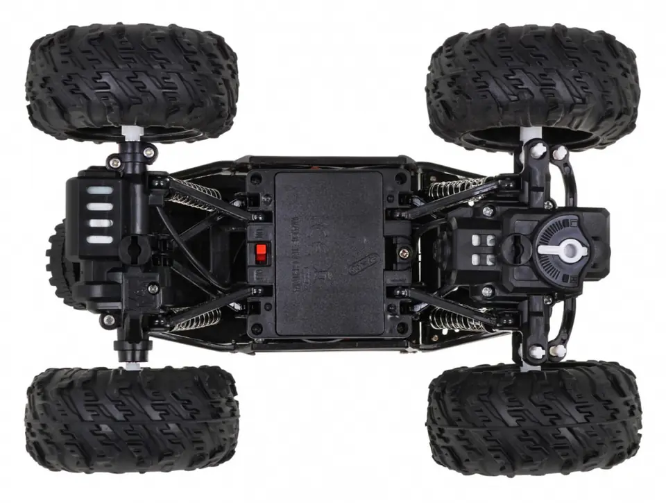 | - samochód RC, - pilot, - stojak na telefon, - akumulator, - USB kabel do ładowania baterii, - śrubokręt |