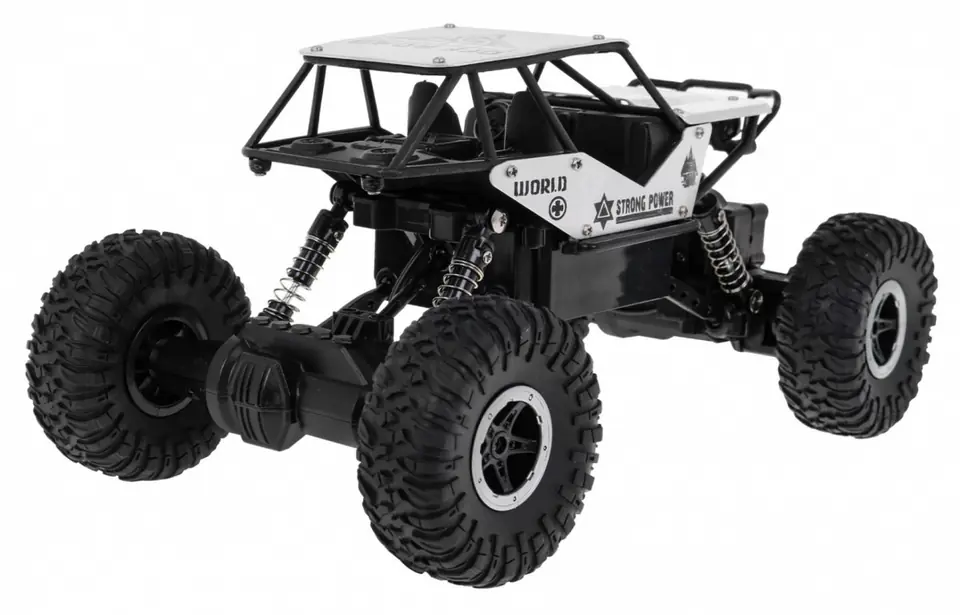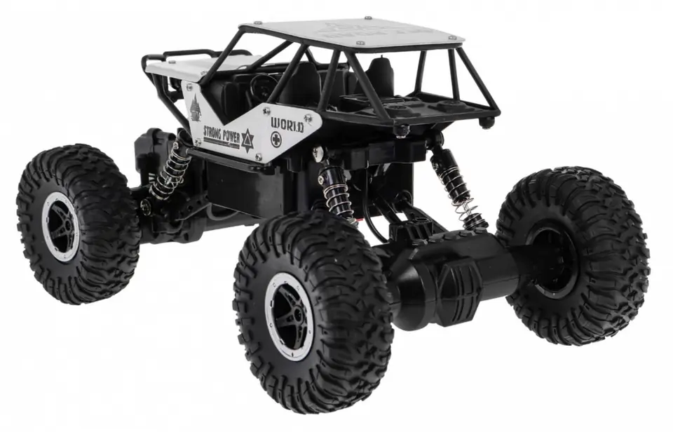 Terenowy pojazd wykonany w skali 1:18, z napędem na 4 koła to propozycja dla dzieci od 6-go roku życia. Pojazd posiada duże gumowe opony i amortyzatory, poradzi sobie nawet w ciężkim terenie. Konstrukcja pojazdu jest antykolizyjna, odporna na wstrząsy i upadki oraz sprawia, że samochód ma lepsze osiągi podczas jazdy. Zabawka sterowana jest pilotem na falach 2,4 GHz. Zasilanie akumulatorem 4,8V 700 mAh (w zestawie)- samochód oraz 3 x AA(brak w zestawie) - pilot. | |