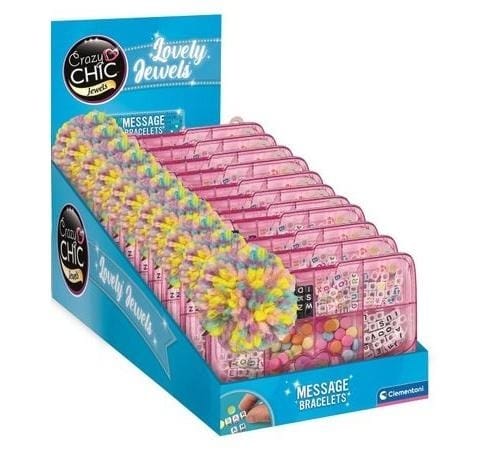 Pudełko o wyjątkowym designie z przezroczystą pokrywą. Zawiera komponenty do przygotowania unikalnych bransoletek z wiadomością.