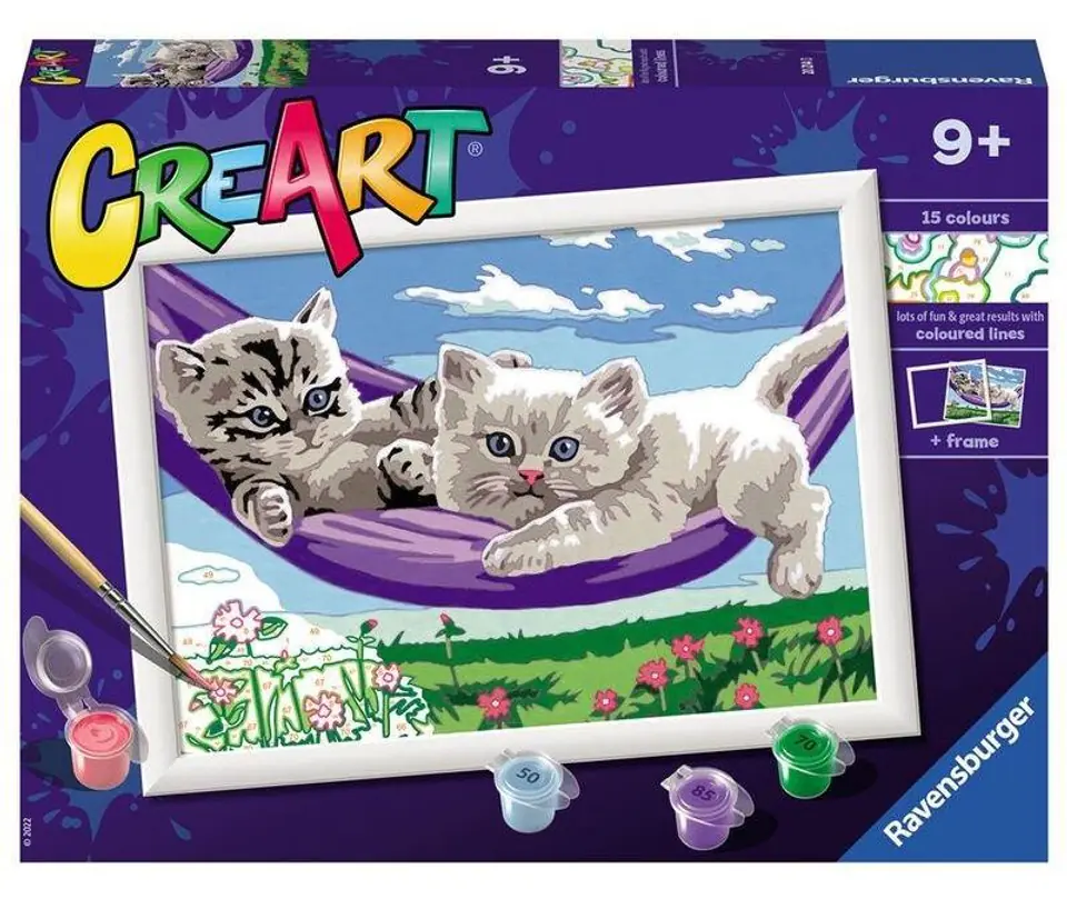 Zestawy CreArt zawierają wszystko to, czego potrzeba, by stworzyć swój własny obraz. Malowanie po numerach to świetna zabawa, która nie tylko ćwiczy sprawność manualną, ale również poprawia koncentrację oraz gwarantuje mnóstwo dobrej zabawy.