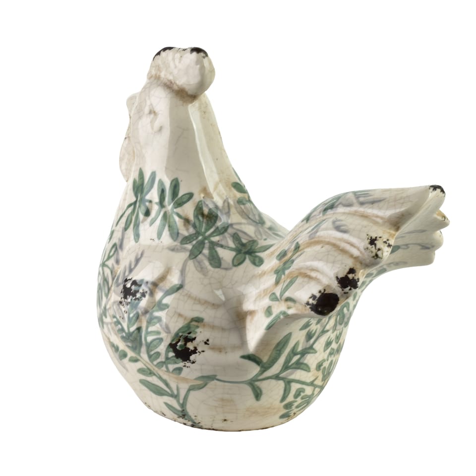 CROCKET ceramiczna figura kury o wymiarach 16,5 10,5 15 cm, wykonana z wysokiej jakości ceramiki. Całość zdobią zielone, roślinne motywy, które nadają figurze naturalnego, dekoracyjnego charakteru i sprawiają, że doskonale komponuje się z aranżacjami ogrodowymi, tarasowymi lub wnętrzarskimi.Figura stanowi piękną ozdobę domu, kuchni, salonu, ogrodu lub balkonu, wprowadzając do przestrzeni ciepły, przyrodniczy akcent. Starannie wykonana i stabilna, może być zarówno samodzielnym elementem dekoracyjnym, jak i częścią większej kompozycji.To idealny wybór dla osób, które cenią estetyczne dodatki z naturalnymi motywami, łączące funkcjonalność z eleganckim designem.