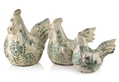 CROCKET- ceramiczna figura kury o wymiarach 21 13,5 19,5 cm, wykonana z wysokiej jakości ceramiki. Powierzchnię zdobią piękne zielone, roślinne motywy, które nadają figurze naturalny i dekoracyjny charakter, idealny do wnętrz i przestrzeni zewnętrznych.Figura jest efektowną ozdobą domu, salonu, kuchni, tarasu lub balkonu, wprowadzając do otoczenia przytulny, przyrodniczy akcent. Stabilna konstrukcja i staranne wykończenie gwarantują trwałość, a gładka powierzchnia ułatwia czyszczenie.Produkt nie jest mrozoodporny, dlatego w sezonie zimowym zaleca się przechowywanie go w suchym, zadaszonym miejscu. To doskonały wybór dla osób, które cenią estetyczne dodatki z naturalnymi motywami, łączące funkcjonalność z eleganckim, dekoracyjnym designem.