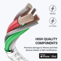 Szybki i wytrzymały przewód USB-C o długości 1,5 metra ze złączem Lightning oraz certyfikatem MFi. Oryginalny chipset Apple C94 zapewnia pełną kompatybilność z najnowszymi wersjami iOS, a także iPadOS dla modeli iPhone'a oraz iPada. Przewód obsługuje szybkie ładowanie baterii w iPadzie (30W) oraz iPhone (27W w przypadku modelu iPhone 14 Pro Max).Specjalna konstrukcja wtyczek ze stopu aluminium sprawia, że kable Crong z serii Armor Link oferują podwyższoną odporność na szarpanie i wyginanie. Elastyczny oplot z wytrzymałego nylonu daje się dodatkowo łatwo zwijać, dzięki czemu długość przewodu można regulować w prosty sposób przy pomocy firmowej spinki na rzep.Cechy produktu:· Interfejs: USB-C do Lightning· Certyfikat MFi (oryginalny chipset Apple C94)· Szybkie ładowanie baterii w nowych modelach iPhone oraz iPad· Wysoka odporność na szarpanie i wyginanie· Elastyczny oplot z wytrzymałego nylonu· Wtyczki wykonane ze stopu aluminium· Firmowa spinka na rzep w zestawie· Transfer danych: 480Mbps· Długość: 150cm