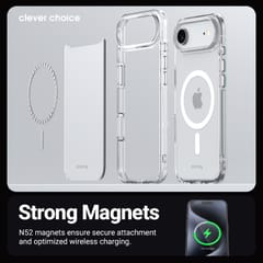 Przezroczyste etui ochronne do iPhone’a 17 Pro Max z wbudowanym magnesem do ładowarki i akcesoriów MagSafe. Ukryty w hybrydowej powłoce pierścień magnetyczny (składający się z 39 mniejszych magnesów) sprawia, że ładowarka oraz pozostałe akcesoria MagSafe dopasowują się do telefonu za każdym razem w idealny sposób.Wbudowany w etui Clear MAG Cover magnes gwarantuje dodatkowo mocne przyleganie i poprawne działanie wszystkich kompatybilnych akcesoriów, w tym ładowarek oraz uchwytów samochodowych. Podwyższony rant wyświetlacza pozwala też bezpiecznie odkładać telefon ekranem do dołu i minimalizuje ryzyko zbicia szybki podczas upadku na ziemię.Cechy produktu:· Wbudowany pierścień z 39 magnesami· Kompatybilne z ładowarką i akcesoriami MagSafe· Przezroczysta konstrukcja hybrydowa z polikarbonu i TPU· Ramka ochronna aparatu z tyłu obudowy· Podwyższony i przylegający rant wyświetlacza· Ochrona wszystkich boków i narożników· Zintegrowane przyciski głośności oraz przycisk boczny· Mocowanie do smyczki· Precyzyjne wycięcia na gniazdo USB-C i głośniki· Produkt 100% oryginalny zapakowany w firmowe pudełko
