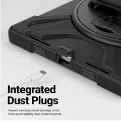 Wzmocnione narożniki oraz silikonowa osłona nachodząca na krawędzie zabezpieczają newralgiczne punkty tabletu, a zintegrowane zaślepki przeciwkurzowe chronią porty przed pyłem, opiłkami i innymi zanieczyszczeniami.