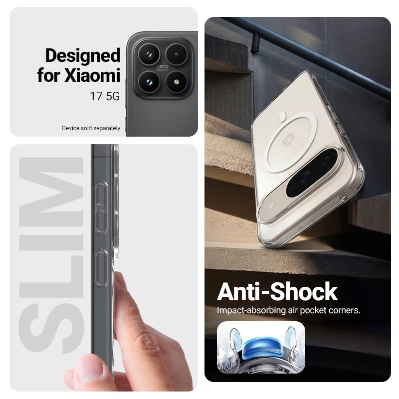 Crong Hybrid Clear Magnetic to nowoczesne etui do Xiaomi 17, które łączy krystaliczną przezroczystość z pełną funkcjonalnością MagSafe. Zaprojektowane z myślą o codziennym użytkowaniu, skutecznie chroni telefon przed upadkami, zarysowaniami i zabrudzeniami, zachowując przy tym oryginalny wygląd urządzenia.