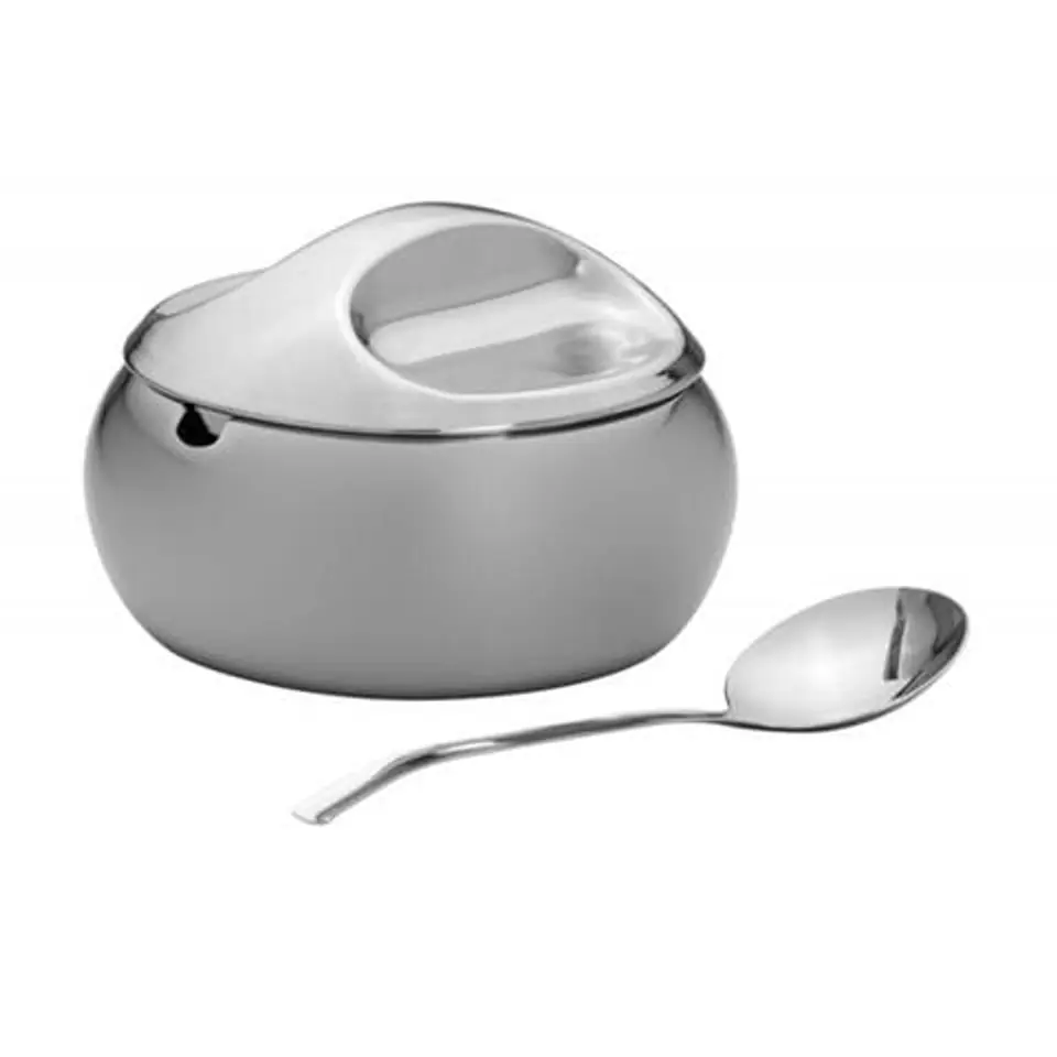 Cukiernica Moon 420 ml Pojemnik na cukier został wykonany z najwyższej jakości stali nierdzewnej odpornej na uszkodzenia mechaniczne. Estetycznie i klasycznie wykonany przyrząd z łatwością wkomponuje się zarówno w rustykalną, jak i nowoczesną zastawę stołową jako dodatkowy element dekoracyjny. Informacje dodatkowe: pojemność: 420 ml / średnica: 10 cm Cukiernica oraz łyżeczka wykonane ze stali nierdzewnej Wykończenie zew. : połysk Opakowanie: kolorowy karton Użytkowanie: kontakt z żywnością