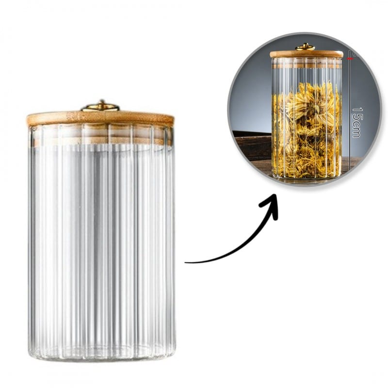 Cukiernica, pojemnik ryflowany z przykrywką bambusowa, rozm. M, 850 ml 1szt SZK168