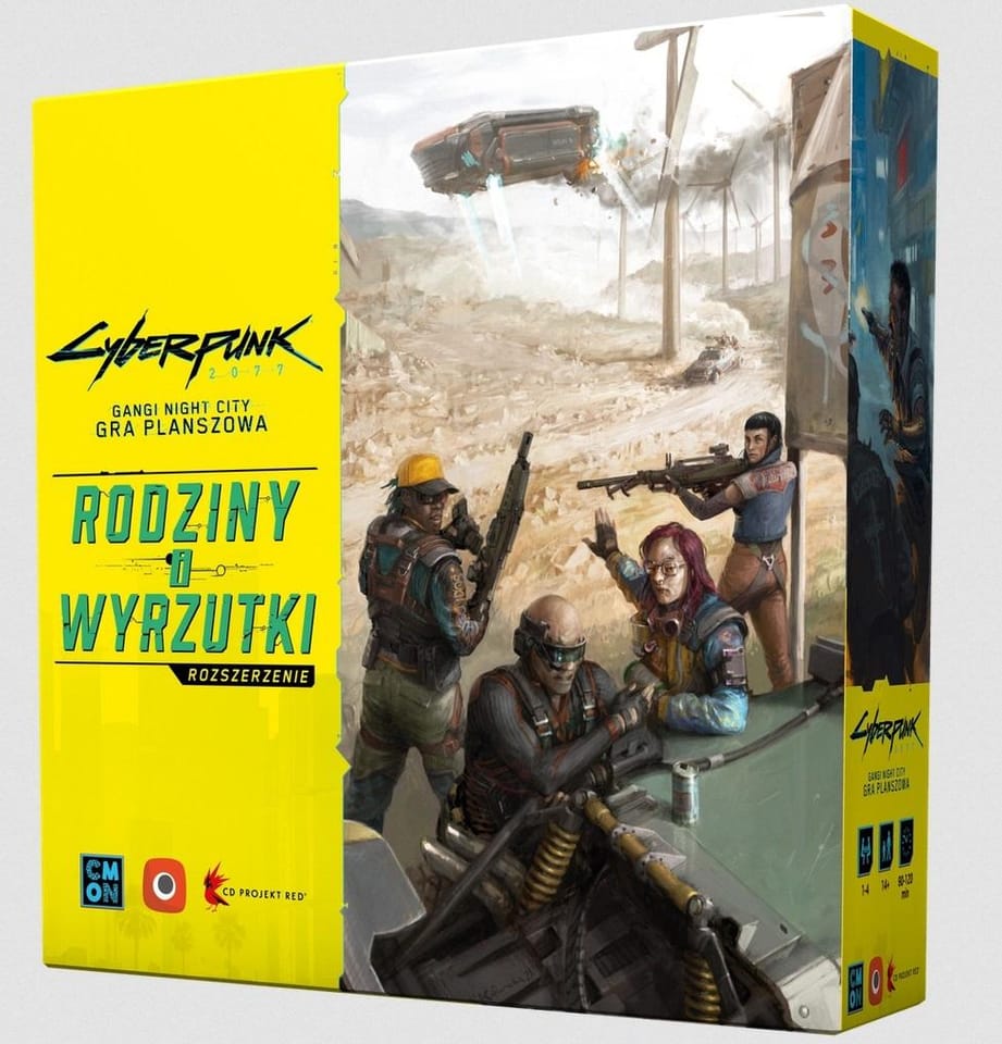 Rodziny i wyrzutki wprowadzają do gry dwa nowe gangi: Aldecaldos i Wraiths wraz z całym dobrodziejstwem inwentarza. Z tym pudłem możesz grać w Cyberpunka także w 5 osób! Poszerz pulę dostępnych gangów, odśwież rozgrywkę za sprawą nowych zdolności, powiększ planszę o jałowe Badlands, dorzuć do puli piątą Opowieść i rzuć na kolana całe Night City!
