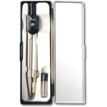 Metalowy cyrkiel firmy TETIS idealny do pracy w szkole jak i w domu. Cyrkiel zapakowany w plastikowe etui. W komplecie dolączony pojemniczek z 2 wkladami zapasowymi.