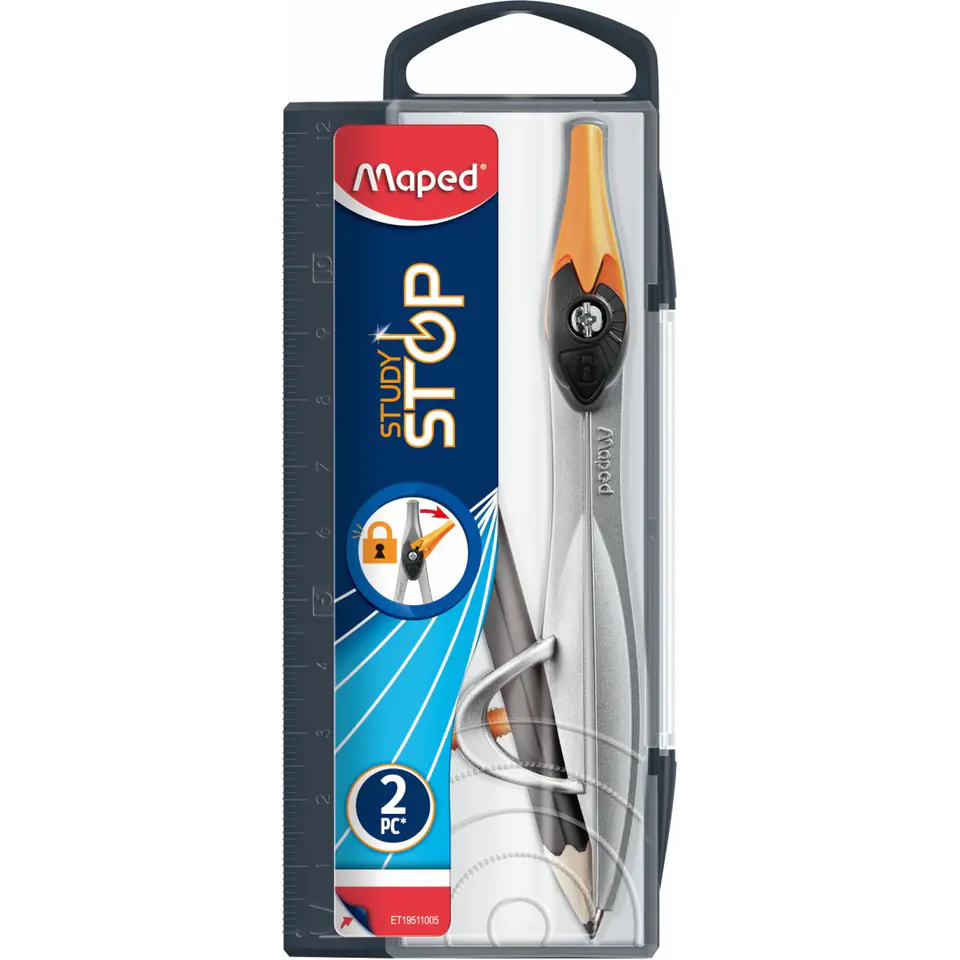 CYRKIEL SZKOLNY METALOWY Study Stop + OLÓWEK MAPED