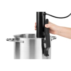 ---------------Główne cechy---------------Wyświetlacz LEDDotykowy panel sterowaniaWbudowany zacisk mocującyZabezpieczenie przed przegrzaniemAutomatyczne wyłączenie przy niskim poziomie wodyZdejmowana osłona grzałki dla łatwego czyszczeniaWskaźnik LED etapu gotowania---------------Dane techniczne---------------Moc: 1200 WCyrkulacja wody: 8 l/minPojemność naczynia: 5-20 lKlasa ochrony: IPX7Dokładność temperatury: ±0,1°C (0,1°F)Zakres temperatury: 20°C – 95°C (68°F-203°F)Min. poziom wody: 76 mmMaks. poziom wody: 145 mmJednostka temperatury: °C/ °FTimer: do 99 hMateriał: ABS + stal nierdzewnaZasilanie: 220-240 V~; 50/60 Hz---------------Parametry fizyczne---------------Waga: 868 gWymiary: 351 x 90 x 56 mmDługość przewodu zasilającego: 100 cm