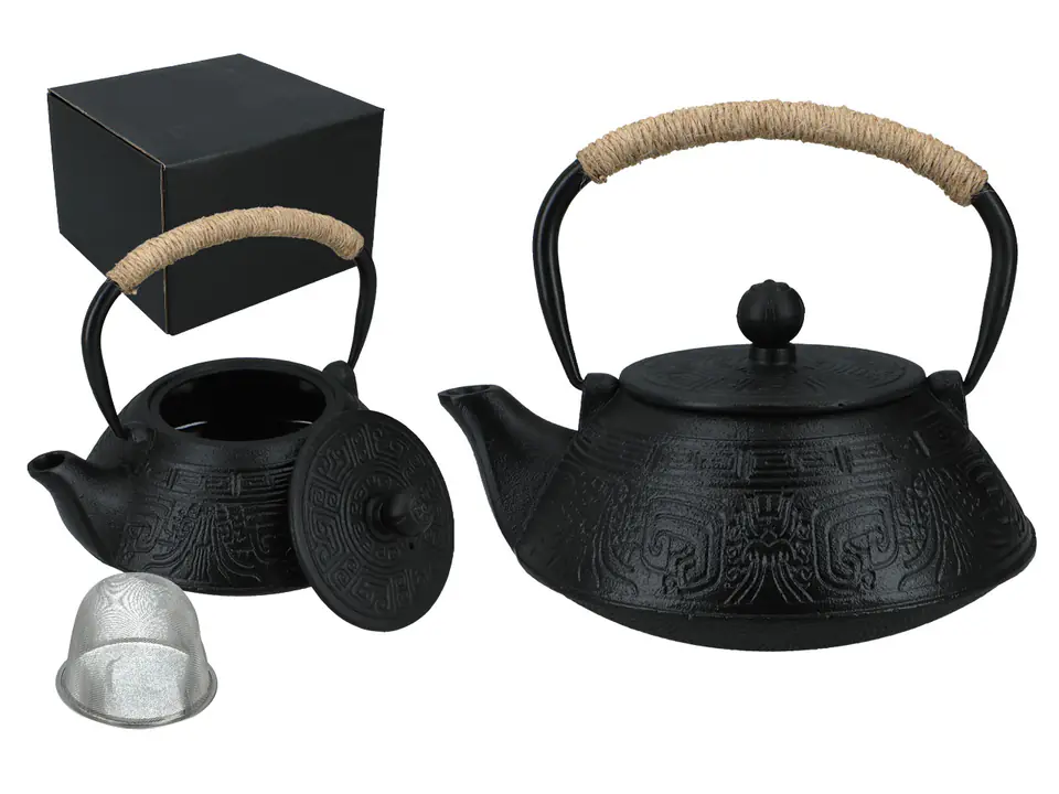 Żeliwny czajnik z zaparzaczem. Solidny i zrobiony z dobrego, mocnego materiału.