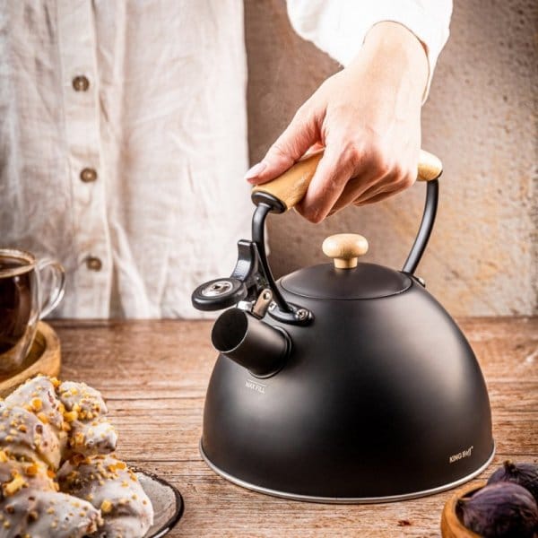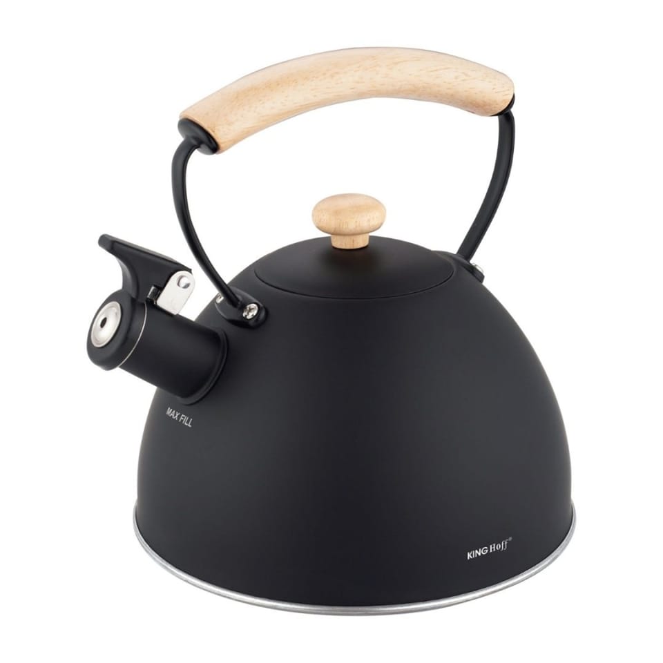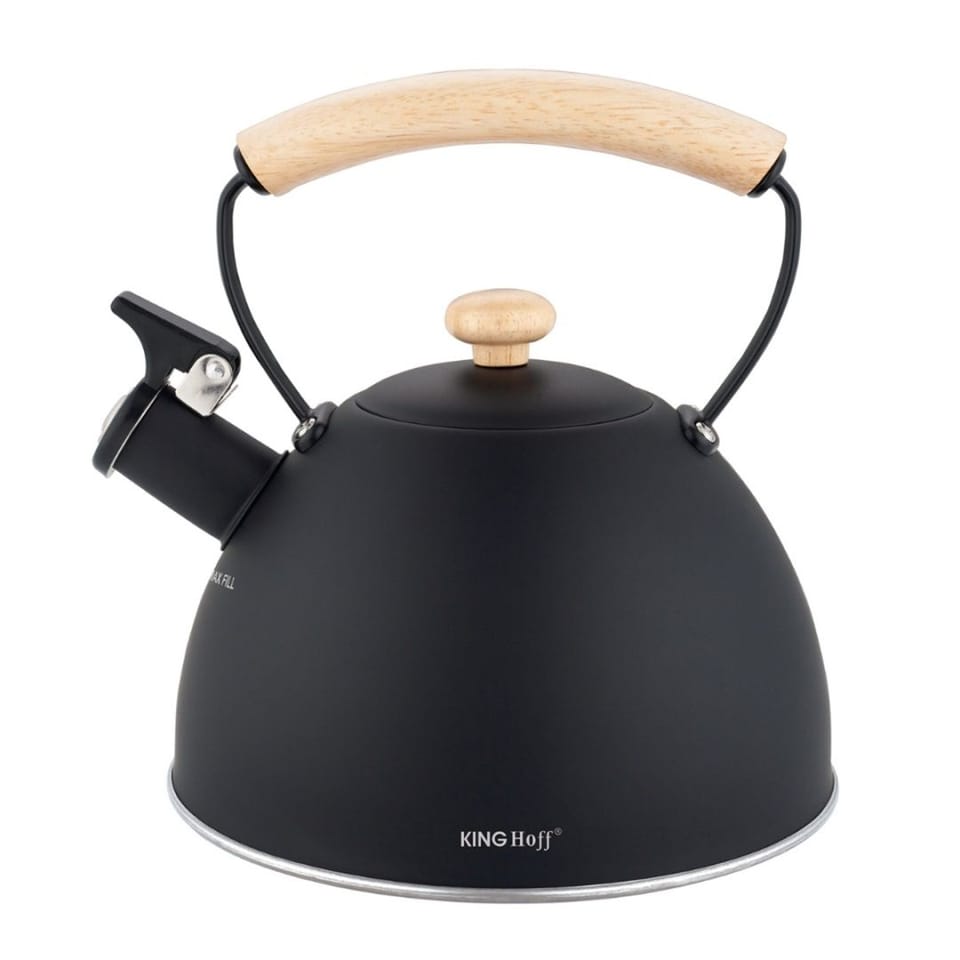 KINGHoff KH-1999 to połączenie minimalistycznej czerni, naturalnego drewna i nowoczesnej formy, które nadaje kuchni wyjątkowego charakteru. Matowa powierzchnia oraz drewniane akcenty sprawiają, że czajnik wygląda jak element dekoracyjny, a nie tylko praktyczne naczynie. Duża pojemność 2,5 litra oraz solidna stal nierdzewna czynią go doskonałym wyborem do domu, kawiarni, pensjonatu czy dla większej rodziny.