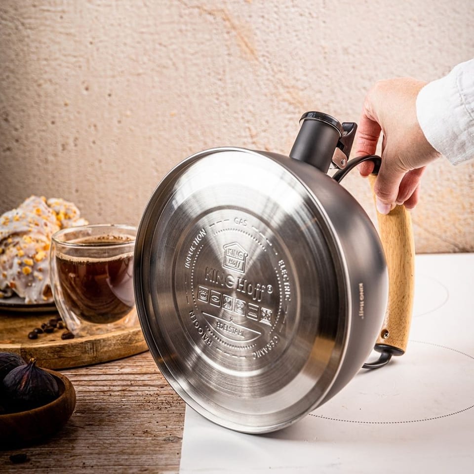 Dlaczego warto wybrać czajnik KINGHoff KH-1999? KH-1999 łączy nowoczesne wzornictwo z praktycznymi rozwiązaniami. Stal nierdzewna zapewnia trwałość i odporność na codzienne użytkowanie, a drewniany uchwyt i pokrętło dodają całości przytulnego charakteru. Dzięki dużej pojemności i wygodnej obsłudze sprawdzi się zarówno w domu, jak i w gastronomii.